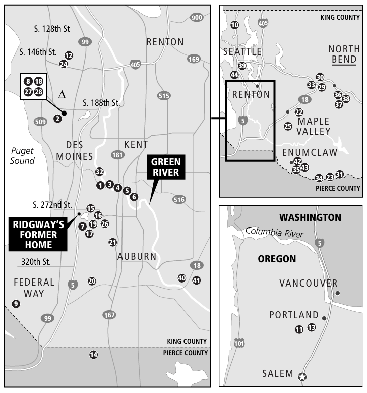 Of course, I had to ask my mom if she remembered our old address in Kent (she did not). When she asked why, I told her I was doing some research (then went radio silent for a few). I finally asked if she’d heard about the Green River Killer/Gary Ridgway… and she said, “Yes. We lived there when he was on the loose. And we were close to the Green River.” Told her that’s the research I was doing and sent her the body map and she responded, “Grandma’s house was right there in Renton.”
